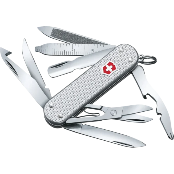 When you've got a problem to solve, the MiniChamp Alox is your handy helper. This little champion, with its classic design, features stylish Alox scales in an elegant silver. It packs a diverse range of functions, including a real screwdriver. Keep it with you at all times, and stay ready for anything.