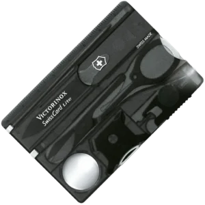 You'll be amazed at how many tools we've packed into the SwissCard. And you'll be surprised at how often you need one of those tools tucked away inside. And with its clever, award-winning design and incredible functionality, you'll enjoy each time you need to take it out. Featuring a bright LED, the SwissCard is always ready to shed some light on your everyday (and night) adventures. Functions: emergency blade (letter opener) scissors magnifying glass screwdriver 3 mm screwdriver 5 mm Phillips screwdriver 1 – 2 Phillips screwdriver 00 – 0 tweezers Pen Pin LED ruler (inches) ruler (cm)