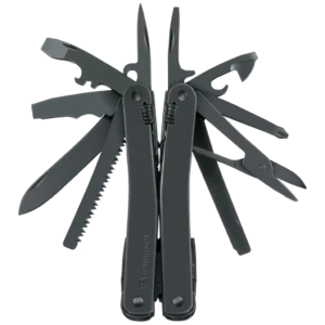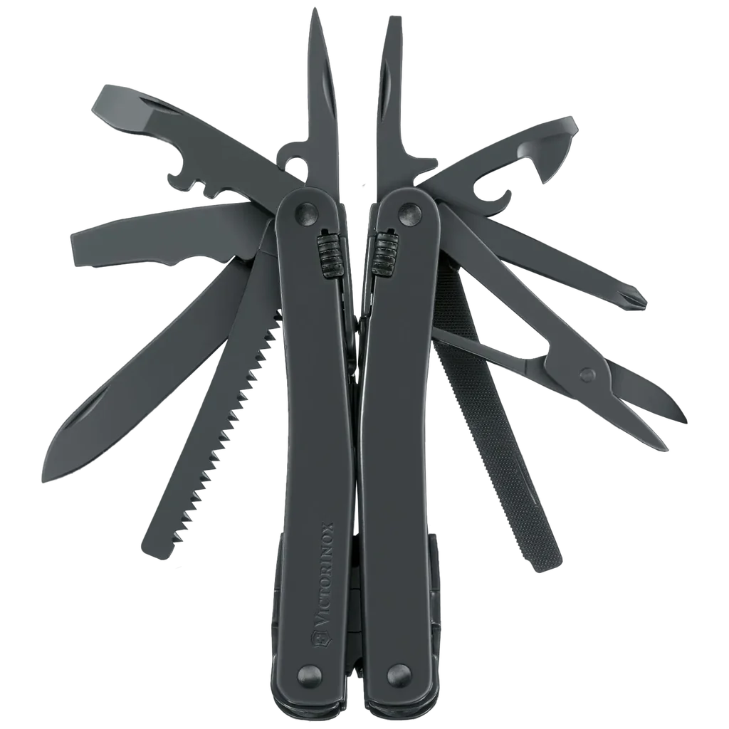 The Swiss Tool XBS is about extremes. Extremely handy, functional and compact, think of it as a complete toolbox in a single tool. Suited with a durable pouch, this incarnation of a multi-tool features burnished steel for more than just an elegant blackened finish, as it provides for better protection against corrosion. To every owner the Swiss Tool XBS will soon become the tool for which they find a million uses – at home, at work and outdoors. Please note: Can leave residue on hands during initial handling.
