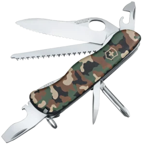 - Functions: Keyring, Lock Blade, Tweezers, Toothpick, Can Opener, Bottle Opener, Small Screwdriver (FH), Screwdriver (FH), Phillips Screwdriver, Wood Saw, Wire Stripper, Reamer Punch