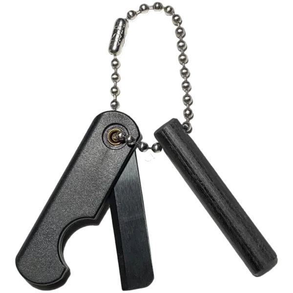 The smallest, most effective fire starting keychains money can buy. Ceramic will outperform every other scraper material because it packs small, won't rust, and won't dull. It is 100% corrosion-free and designed for use in any environment. Unfold the blade to cut through cardboard, leather, fabric, cord, or meat. The long slender blade gives a great usable length for precision slicing and will hold an edge better than steel.
