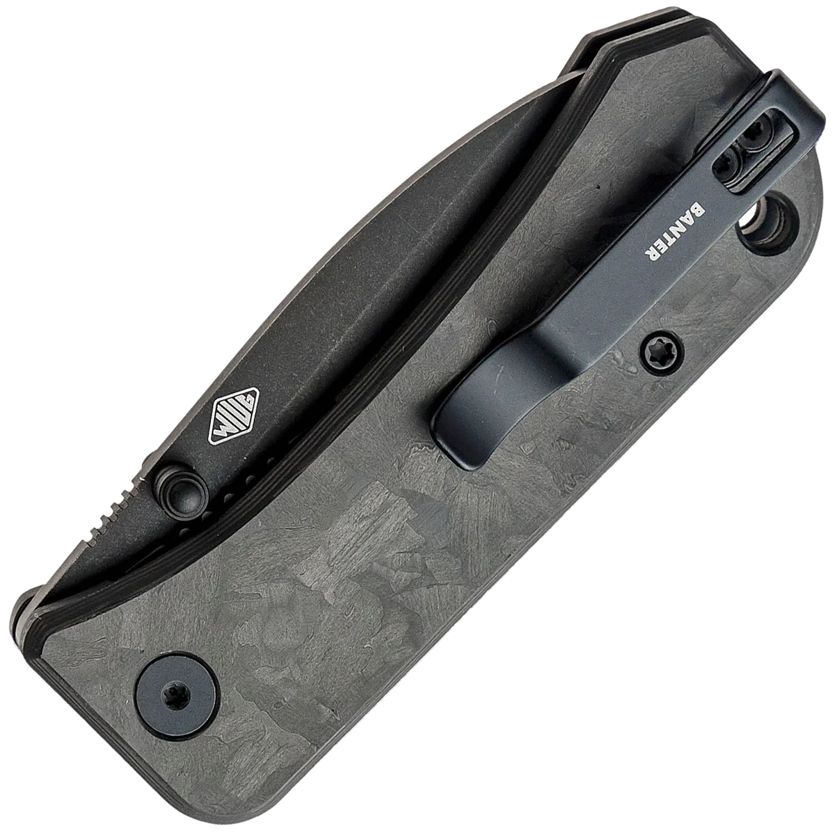 The Banter is Ben Peterson's collaboration with We Knives drawing inspiration from other folding knives with the sole aim of being the perfect EDC piece. First and foremost, the Banter is an ideal size for everyday carry. The nearly three-inch blade is housed in a compact handle so the overall length is just over six-and-a-half inches. The wide base gives you ample room to grip and places the cutting surface right next to the fingers for more leverage. It's a simple shape with carbon fiber and stainless steel liner construction but what it lacks in complicated design aesthetics it more than makes up in terms of ergonomics and strength. It's comfortable, solid, and it gets the job done. Dual thumb studs allow multiple opening methods and the deep-carry pocket clip is set up for tip-up, right-hand carry. The jimping on the thumb ramp is ultra-functional and the lanyard hole is large enough for 550-paracord.
