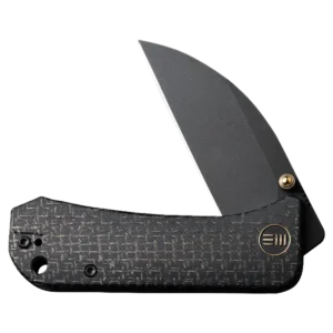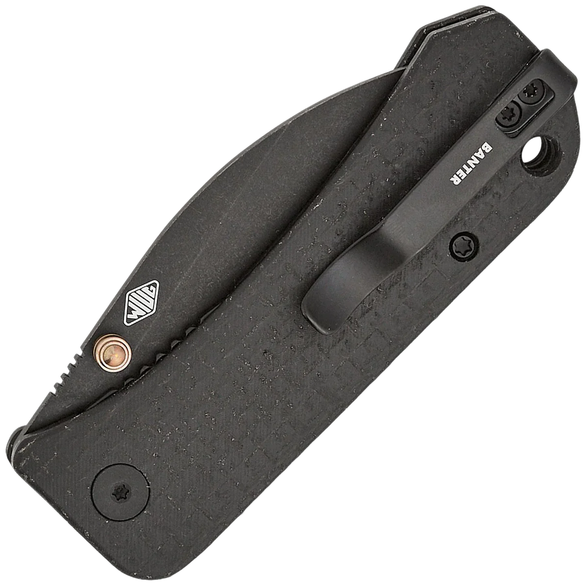 The Banter is Ben Peterson's collaboration with We Knives drawing inspiration from other folding knives with the sole aim of being the perfect EDC piece. First and foremost, the Banter is an ideal size for everyday carry. The nearly three-inch Wharncliffe blade is housed in a compact handle so the overall length is just under six-and-a-half inches. The wide base gives you ample room to grip and places the cutting surface right next to the fingers for more leverage. It's a simple shape with simple carbon fiber and stainless steel liner construction but what it lacks in design aesthetics it more than makes up in terms of ergonomics and strength. Dual thumb studs allow multiple opening methods and the deep-carry pocket clip is set up for tip-up, right or left-hand carry. The jimping on the thumb ramp is ultra-functional and the lanyard hole is large enough for 550-paracord.