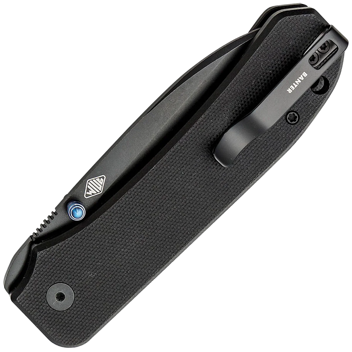 The Banter series is Ben Peterson's collaboration with We Knives drawing inspiration from other folding knives with the sole aim of being the perfect EDC piece. The Big Banter takes the beloved design of the original and stretches it out nearly two full inches overall. The now 3.69" blade is housed in a sizeable handle so the overall length is just over eight-and-a-third inches. The wide base is gone but you still have ample room to grip and a finger choil for more precise work. The drop point blade opens smoothly on a caged ceramic ball bearing pivot opening via ambidextrous dual titanium thumb studs. A nearly full flat grind on the blade provides solid slicing performance while retaining good durability with a spine swedge tapering the tip for piercing and detail work Barrel spacers join the nested steel liners and handle scales in a lightweight, easy to maintain open back construction, and durable weather resistant G-10 scales offer traction for a secure grip while being easy on your pockets. The deep-carry pocket clip is reversible for ambidextrous tip-up carry.