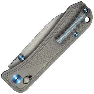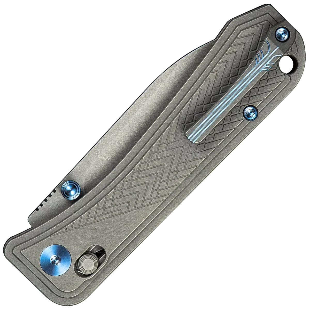 The Bougie Banter elevates the iconic Banter design with premium Art Deco flair, featuring a striking machined titanium handle. Designed by Ben Peterson of Knafs Co., this upscale version maintains the original's practical, compact size and clean, appealing lines. A nearly three-inch modified drop-point blade offers versatility for everyday tasks, while the ergonomic handle ensures superior grip and control. Dual thumb studs, a reversible deep-carry clip, and a reliable crossbar lock make it as functional as it is stylish, delivering a refined EDC experience for any user.