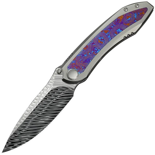 The WE Knife Co. Winsome has a 6AL4V Titanium and Timascus handle and a 3.74" Fafnir Damasteel drop point blade. It utilises a thumb stud opener with a ceramic ball bearing pivot for smooth action and easy single-handed use. A sturdy nested frame lock keeps the folding knife open during use. The titanium pocket clip is mounted for tip-up, right carry.
