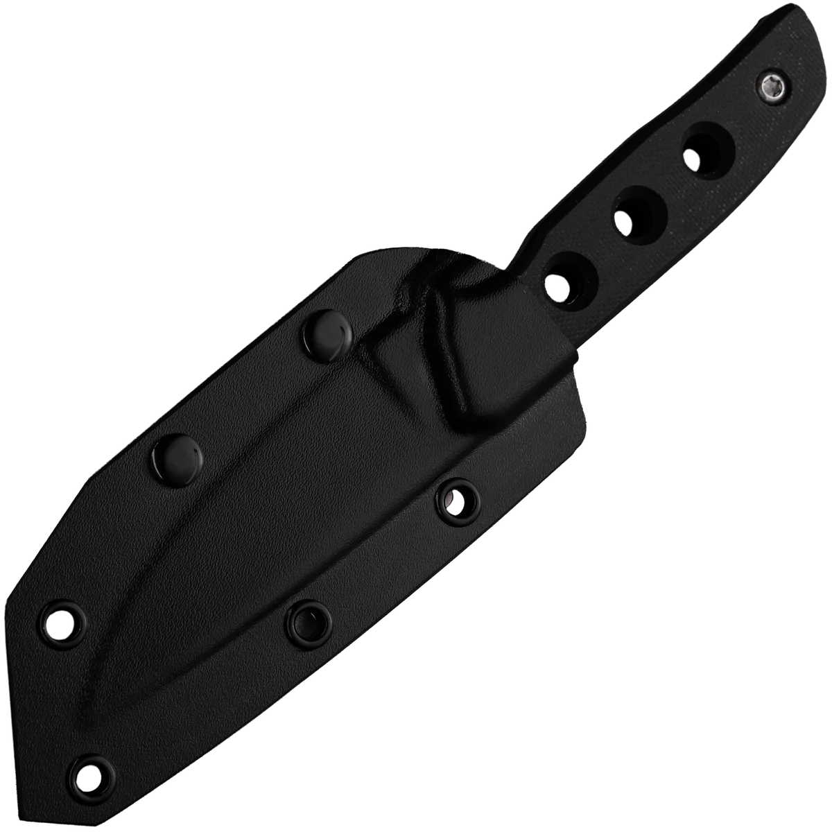 The Ambro is an extraordinary knife that is perfect for any situation. Made of the highest quality D2 tool steel, the knife has a total length of 7.80" and a blade length of 3.54". This small fixed blade knife is a tool that will provide you not only with durability, but also with excellent cutting properties. The cut-out design of the handle makes it perfectly balanced and light, and the black G10 handle guarantees a secure and comfortable grip, even in adverse conditions. The set includes a practical Kydex sheath with a Tek-Lok stainless steel fastener that makes storage and transportation easier.