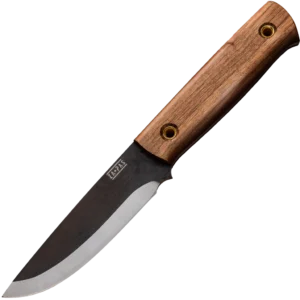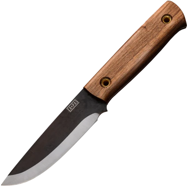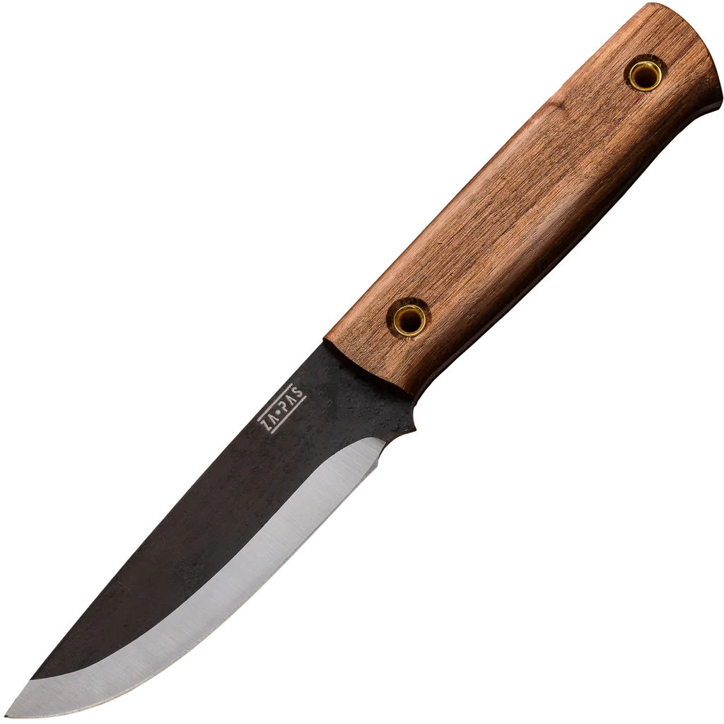 The Za-Pas BIWI is a knife that will provide you with excellent cutting properties and durability, regardless of the situation! It's a slim, lightweight fixed blade knife that will easily deal with light campsite chores, as well as heavier survival challenges in the field. The 4.29" blade is made of durable 3mm thick 4H13 steel, hardened to 58HRC, making it highly resistant to rust, very tough and easy to sharpen. The handle is constructed from American Walnut, and is fixed with brass grommets, through which a lanyard can be threaded. The knife comes with a sheath made of 3mm thick cowhide, with eye-catching contrasting stitching for a traditional look. For easier storage and transportation the sheath has an attached belt loop for vertical carry.