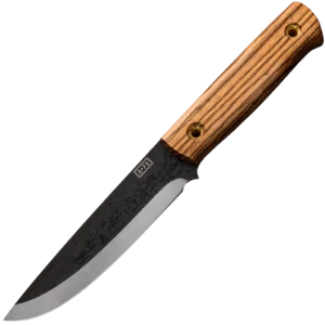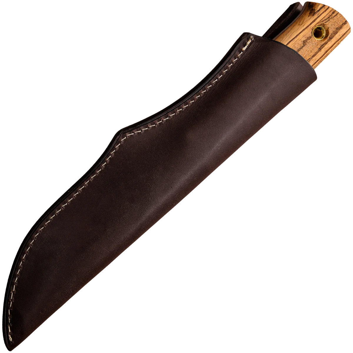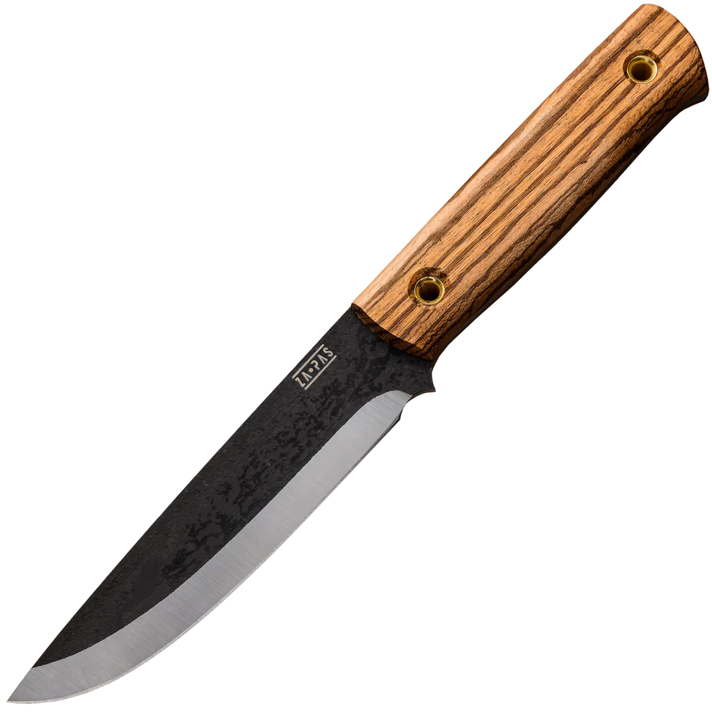 The larger version of the Za-Pas BIWI is the perfect choice for outdoor and survival enthusiasts looking to expand their collection. This impressive knife with a total length of 9.49" and a blade length of 5.04" is made of high-quality 4H13 steel, which ensures unrivaled durability and cutting precision. 4H13 is a steel with high resistance to rust, strong and easy to sharpen. The contrast of raw steel and the satin finish adds to the rugged appeal of this tough fixed blade. The handle is made of exotic hard wood – Zebrawood, and is fixed with brass grommets, through which a lanyard can be threaded. Not only visually striking, the handle offers a firm grip in all conditions. The knife comes with a sheath made of 3mm thick cowhide, with eye-catching contrasting stitching for a traditional look. For easier storage and transportation the sheath has an attached belt loop for vertical carry. Za-Pas knives are made entirely in Poland by a small team of knife enthusiasts, from the concept to construction, using materials and semi-finished parts obtained from Polish suppliers.