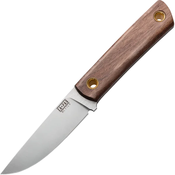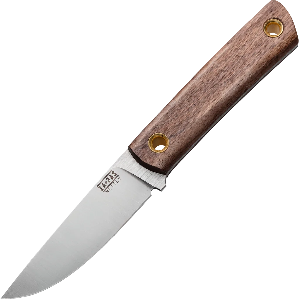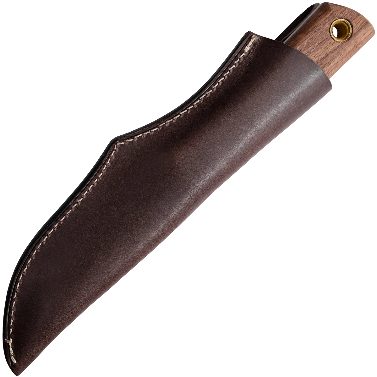 The EC95 from Polish knife makers Za-Pas is a must-have for every outdoor enthusiasts gear bag! This versatile 8.39" long knife with a 3.9" blade was created to meet any challenge and is ready for any task you throw at it. The EC95 has a high-quality D2 tool steel blade – a high carbon material tougher than stainless steel with superior hardness and edge retention. The handle is constructed from American Walnut, a hardwood with a fine grain and luxurious rich tones, and is fixed with brass grommets, through which a lanyard can be threaded. The knife comes with a sheath made of 3mm thick cowhide leather, with eye-catching contrasting stitching for a traditional look. For easier storage and transportation the sheath has an attached belt loop for vertical carry.