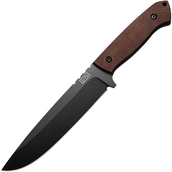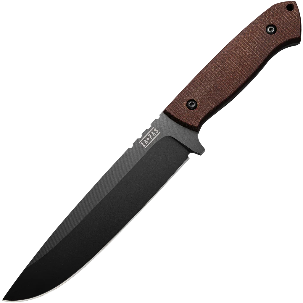 The Za-Pas Expendable is a knife built for the outdoors, and it shows, every stage of development has been implemented with the needs of outdoor enthusiasts in mind. It makes light work of the cutting tasks thrown its way – perfect for hiking, camping, survival and bushcraft enthusiasts. It can be used for trimming branches, cutting ropes or other materials, peeling and cutting food, and performing precision work. The 6.42" blade is hardened at 58-59 HRC which offers both high impact resistance and edge retention. The blade is finished with CERAKOTE ceramic paint, this treatment gives the knife a sleek appearance but also cuts off the oxygen supply to the steel – at the same time making it resistant to weather conditions. Jimping along the spine of the blade provides extra grip, control and safety for the hand. The handle is constructed from brown jute micarta, a material used often in outdoor knives due to its water resistance and ability to withstand heavy impact. The Expendable is supplied with a Kydex sheath with nylon belt loop for safe transportation on a belt or backpack.