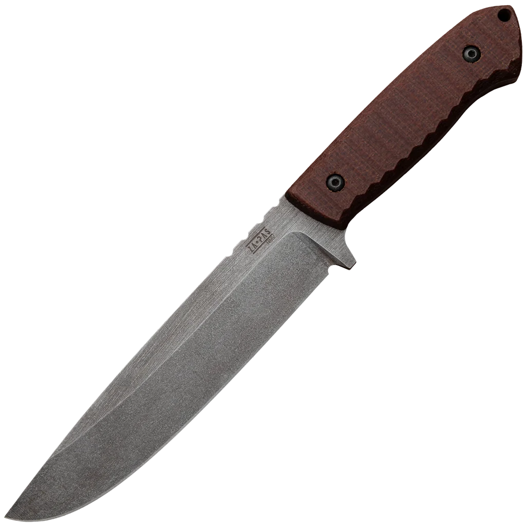 Za-Pas present the Expendable Toxic, an alternative version of the Za-Pas Expendable model which features heavy texturing on the handle for an improved grip. The 6.42" blade is hardened at 58-59 HRC which offers both high impact resistance and edge retention. An acid stonewash finish gives the knife a rugged feel and is ideal for people who use their knives for more demanding tasks, it's low maintenance, rust resistant and hides the appearance of scratches and imperfections that can occur over time. Jimping along the spine of the blade provides extra grip, control and safety. The grooved handle is constructed from Micarta, a popular material in knife making due to its resistance to the elements, shock resistance and comfortable grip. The Expendable Toxic is supplied with a Kydex sheath with nylon belt loop for safe transportation on a belt or backpack.