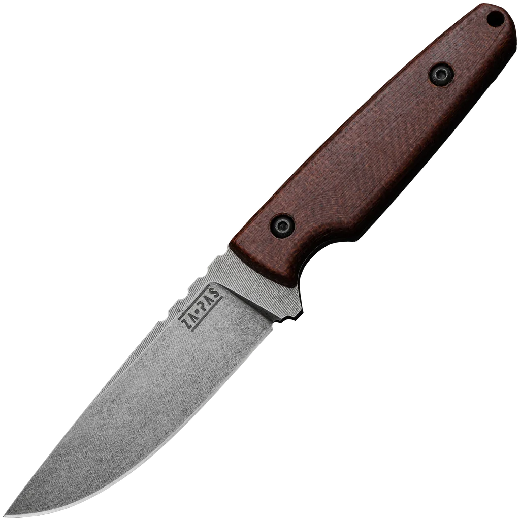 The Handie is a robust, purely off-road knife, a bushcraft knife, a survival knife, and a forest knife – perfect for even the most demanding knife and outdoors enthusiasts. The 4.17" blade is constructed using high-quality NMV (O2) carbon steel which has been hardened to 58-59 HRC, and finished with an acid stonewash. The brown micarta handle has been sandblasted for a better grip in the hand and is mounted on black screws. The Handie is supplied with a Kydex sheath with a loop fixture, allowing you to safely store and transport the knife. Za-Pas is a company founded by enthusiasts for whom the production of high quality knives at affordable prices has become their life's goal. Thanks to their acquired knowledge and experience, they have managed to create a series of knives that meet their exceptionally high standards, are durable, comfortable and 100% made in Poland. One of the main advantages of Za-Pas knives is their versatility. They are perfect for hiking, camping, hunting or climbing. They can be used for trimming branches, cutting ropes or other materials, peeling and cutting food, and performing precision work.