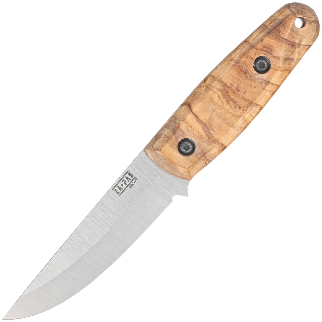 A small, elegant knife for simple work in the field. Styled in a classic Finnish shape. The knife is made of high-quality 80CrV2 (NCV1) carbon steel with a hardness of 59-60 HRC and completed with a satin finish. 80CrV2 (NCV1) is a low-alloy tool steel suitable for knives of various sizes. It is very resistant to cracking, making it suitable for both larger knives and smaller, harder working knives such bushcraft knives. Specially created for all types of outdoor work, the Modern Pukko is the perfect partner for lighting a fire using a fire starter. The handle is made of ash wood with an interesting and eye-catching grain, fastened with black screws. The Modern Pukko is supplied in a sheath made of black cowhide, decorated with contrasting stitching and hand-sewn in-house by the Za-Pas team.