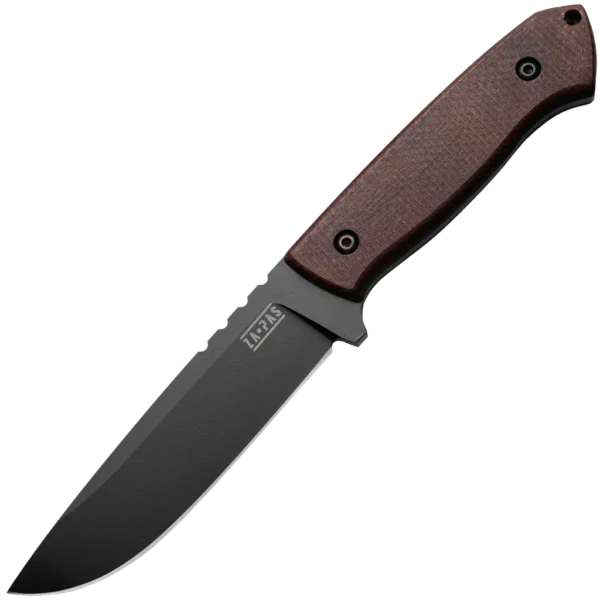 Poland based knife producers Za-Pas present the Ultra Outdoor, a modern and reliable knife with a total length of 9.69", a blade with an impressive length of 5", a thickness of 4.4 mm and high-quality NMV steel construction. The blades 58-59 HRC hardening guarantees exceptional durability and long-term use. The blade is finished with CERAKOTE ceramic paint from the Elite series, this treatment gives the knife a sleek appearance but also cuts off the oxygen supply to the steel – at the same time making it resistant to weather conditions. Not only is the blade impressive – the 4.69" ergonomic handle is made of durable and abrasion-resistant brown jute micarta, which has been sandblasted, ensuring a comfortable and secure grip. The knife is equipped with a solid Kydex sheath, which not only perfectly protects the blade, but also allows you to quickly and easily remove the knife. Whether you are an outdoor enthusiast or survival enthusiast, this knife is the perfect companion for your adventure!