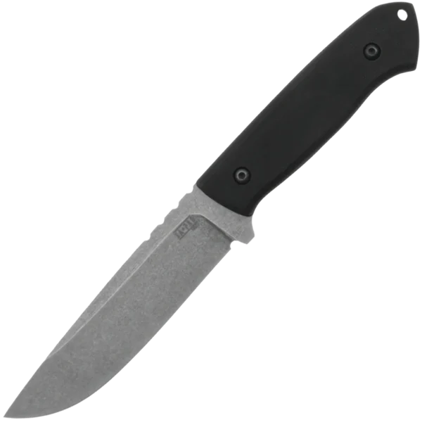 Za-Pas present the Ultra Outdoor, a modern and reliable knife with a total length of 9.69", a blade with an impressive length of 5", a thickness of 4.4 mm and high-quality NMV steel construction. The blades 58-59 HRC hardening guarantees exceptional durability and long-term use. The Ultra Outdoor is finished with an acid stonewash -ideal for people who use their knives for more demanding tasks, imperfections that occur over time blend with the rugged finish making them practical for daily use without the need for constant maintenance. Not only is the blade impressive – the 4.69" ergonomic handle is made of durable and abrasion-resistant black G10, ensuring a comfortable and secure grip. The knife is equipped with a solid Kydex sheath, which not only perfectly protects the blade, but also allows you to quickly and easily remove the knife. Whether you are an outdoor enthusiast, camper or bushcrafter, this knife is the perfect companion for your adventure!