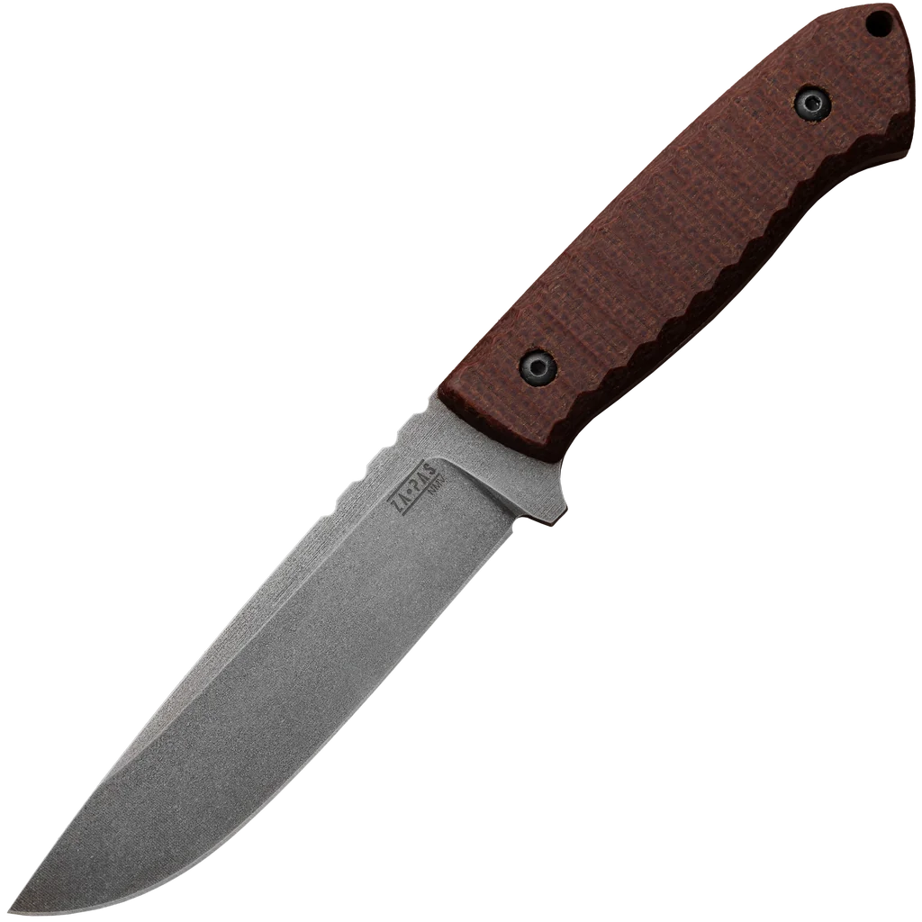 Introducing the Ultra Outdoor Toxic, an alternative version of the original Ultra Outdoor, from Polish knife makers Za-Pas. This practical full tang fixed blade knife was made for the gear bags of survival enthusiasts, campers and bushcrafters everwhere! Boasting a 5" blade constructed from robust 4.4mm NMV Carbon Steel hardened to 58-59 HRC, the knife is a good compromise between high impact strength, durability and sharpness. The acid-stonewash finish of the blade offers a low maintenance, rugged appearance that hides the imperfections that arise from heavy use over time and improves rust resistance. Pronounced jimping on the spine of the blade increases precision and control when making delicate cuts. The handle of the Toxic is what sets it apart from its predecessor, with deep grooves set into the micarta scales for an enhanced grip in all conditions. Micarta is a popular material in knife making due to its resistance to the elements, shock resistance and comfortable grip. The knife is equipped with a solid Kydex sheath, which not only perfectly protects the blade, but also allows for quick and easy removal.