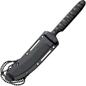 Entirely re-engineered for this year our Spike series continue to raise the bar for neck knives! Thin, light and super-tough, their razor sharp, zero ground blades, are complemented by heavily scalloped, textured handle scales that offer a comfortable, secure grip. Integral quillons provide a safe stop for index finger and thumb, while the textured Faux G-10 provides excellent positive traction even when your hands are cold, wet and slippery. Available in four distinctive blade shapes (Bowie, Drop Point, Tokyo and Tanto point) they offer all the strength of a solid steel one-piece construction (much stronger than any tactical folder and even rivaling the strength of some boot knives) while still being light enough to carry all day without fatigue. The Spike series is come complete with a Secure-Ex sheath that provides greater retention and safety. Super lightweight (weighing in at 3oz in the sheath!) the Spikes can be comfortably worn around the neck 24/7 by using the black bead lanyard provided, or carried on a waistband or belt by taking advantage of their Tek-Lok™ compatible design.
