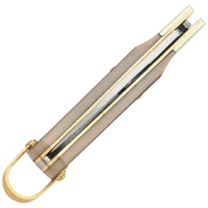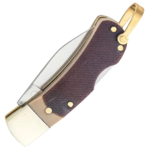 - Old timer folding knife made from 7Cr17MoV stainless steel, satin finished drop point blade. Brown delrin saw cut handles with nickel silver bolsters to give this knife a classic style! Framelock mechanism to ensure a securely locked blade.